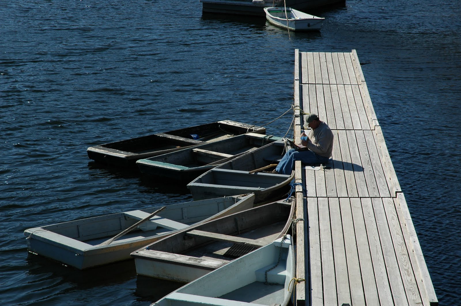 Now hear the rowboat strain and creak